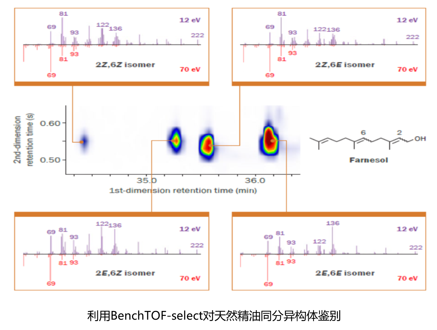 ►思 聚为您提供BenchTOF飞行时间质谱,其在分析中可得到化合物所有离子碎片,使其比质量过滤四级杆质谱更灵敏。同时采用直接提取离子源技术,就完全可以在全扫描模式下,做到对已知化合物和未知物同样高的检测灵敏度。可结合INSIGHT全二维气相可用于日用消费品中过敏原筛查,精油中关键化合物和添加的天然化合物鉴别。BenchTOF飞行时间质谱得到的谱图可直接进行NIST 或Wiley谱库检索,并结合专利的串联离子源技术,同时得到70eV和低电压的电离两个质谱图,方便化合物快速准确定性。