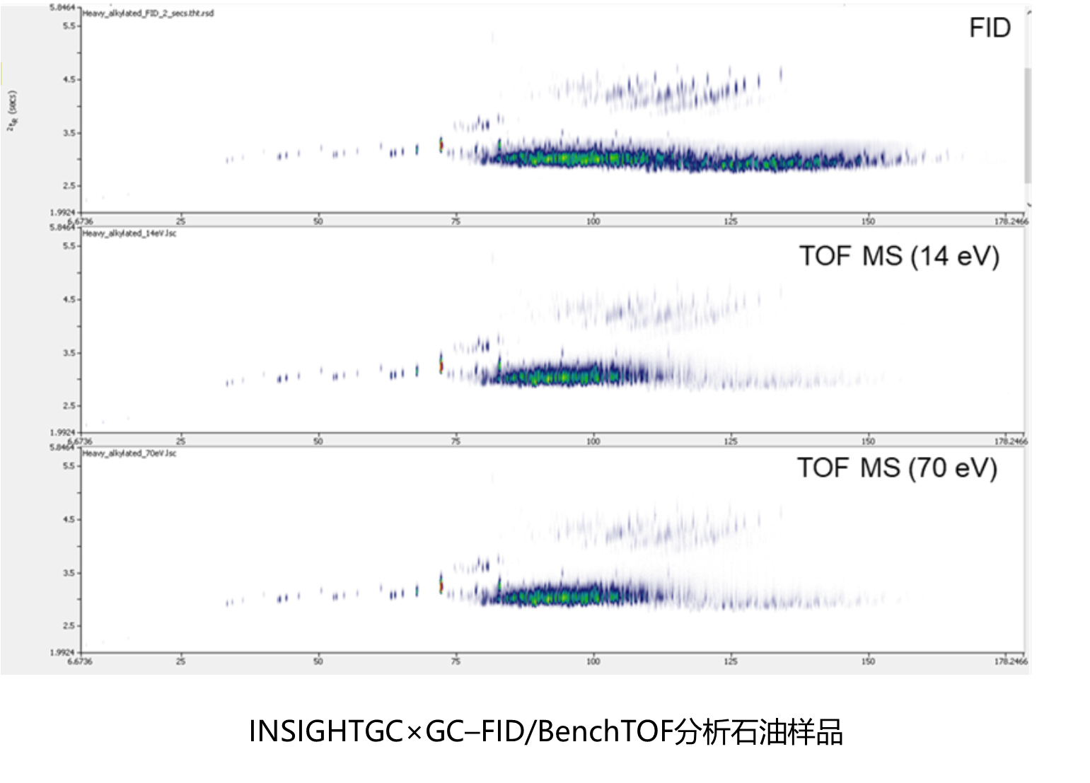 ►对于这 类应用,思聚为您提供SepSolve最新气流调制全二维气相系统,增强这类复杂样品分离效果,系统中的BenchTOF飞行时间质谱具有极高的采集速率,且生成的化合物数据丰富,是全二维气相最理想的质谱检测器。石油化工行业的最佳分析检测器是使用火焰离子化检测器(FID)进行目标化合物定量。因此我们采用气流调制的GC×GC来简单地实现双检测器同时检测,这使得BenchTOF可用于可靠的定性识别,同时依赖于FID进行可靠的定量分析。