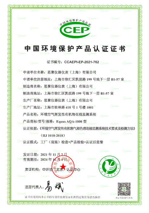 喜报——Equus AQA-1000环境空气VOCs在线监测系统顺利通过CCEP认证!