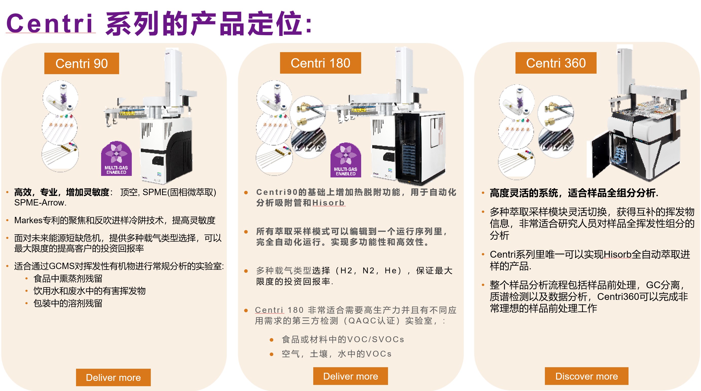 轻松升级:Centri 90可以轻松升级到Centri 180,实现更多的技术应用,包括Hisorb大体积吸附萃取和热脱附(热解析)技术